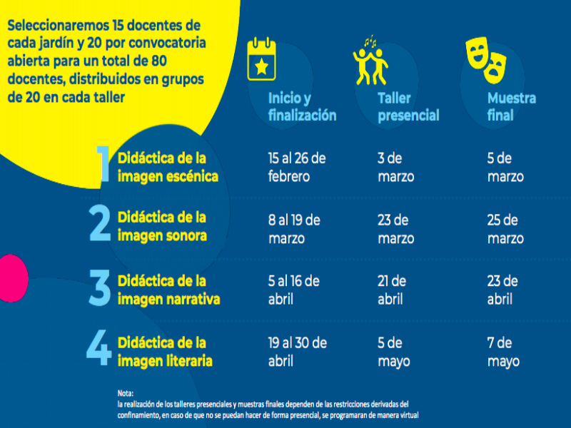 Teatro-talleres gratuitos virtuales para maestros de primera infancia.