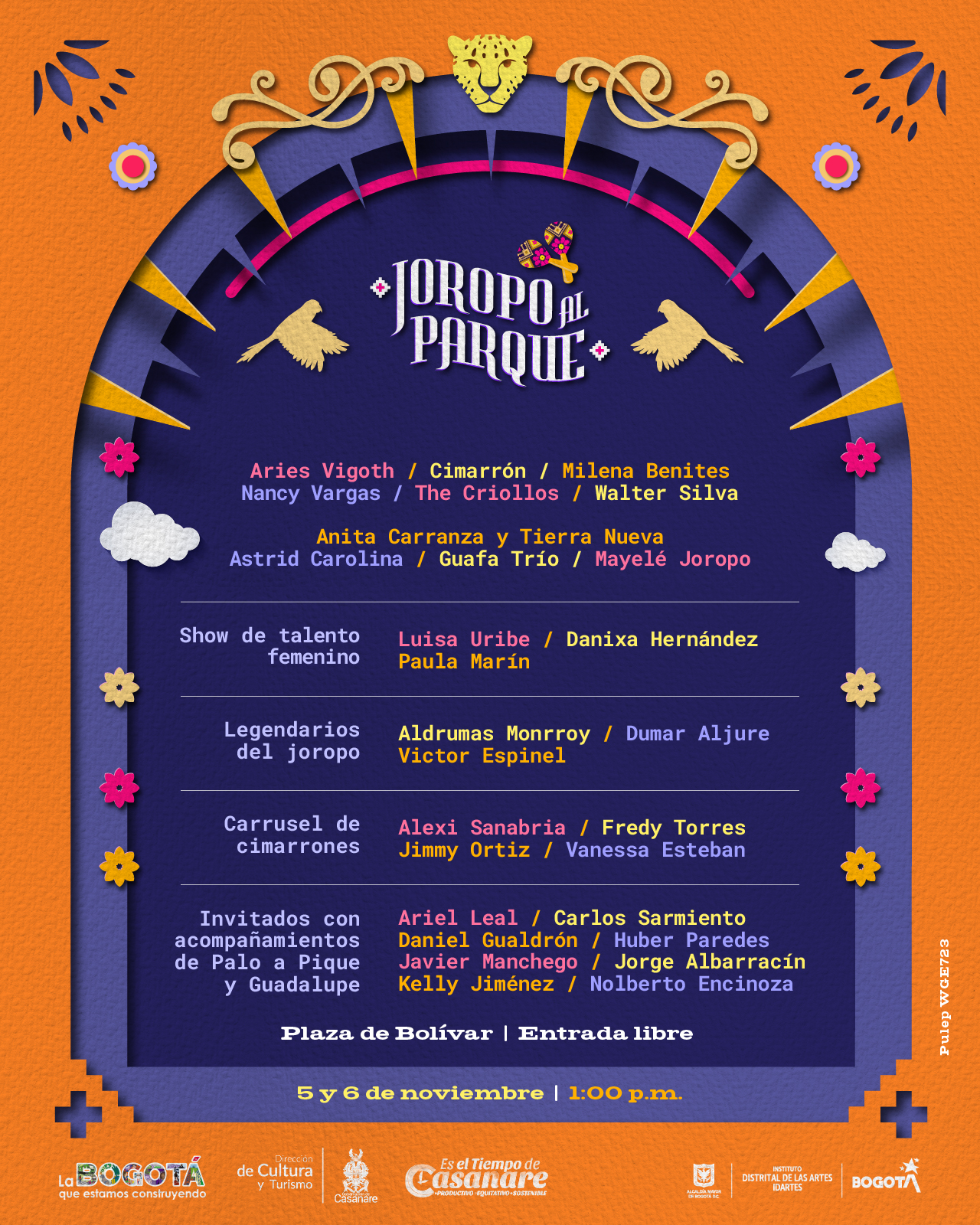 Nacionales: Alfredo Gutiérrez, Cimarrón, Las Mijas, María Cristina Plata, Margarita Siempre Viva, Colectivo de Fuego, Los Cumbia Stars, Radamel, Motilonas Rap, Yeison Landero, Cerrero y la marea y el Rap Filarmónico.