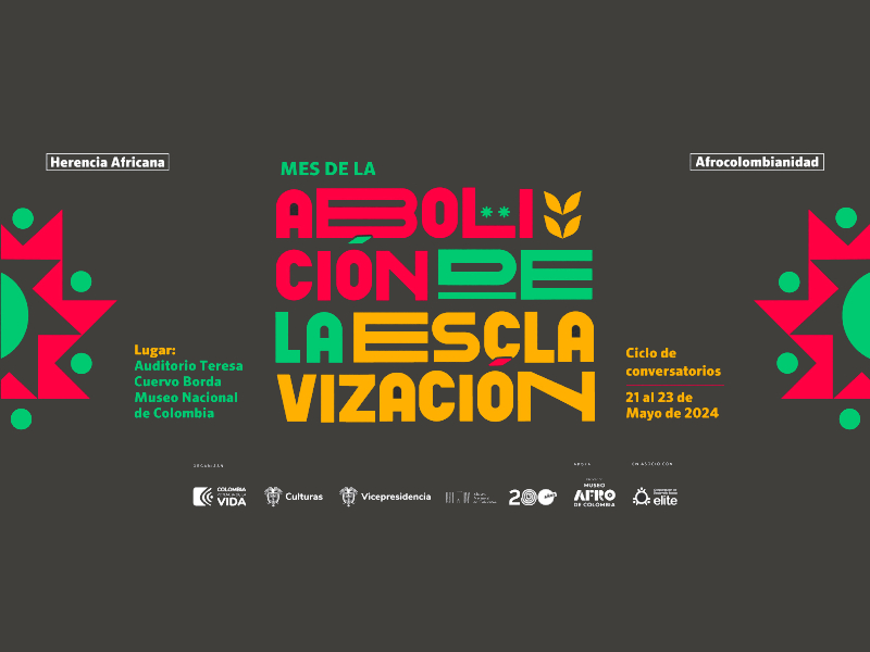 En el marco del Mes de la Abolición de la Esclavización, el Museo Nacional de Colombia, con el apoyo de la Vicepresidencia de la República y del Proyecto Museo Afro, presentará el ciclo de conversatorios "El Museo Nacional y las reparaciones históricas de los pueblos étnicos en Colombia". Estas charlas se realizarán los días 21, 22 y 23 de mayo en el auditorio Teresa Cuervo Borda del Museo Nacional de Colombia.